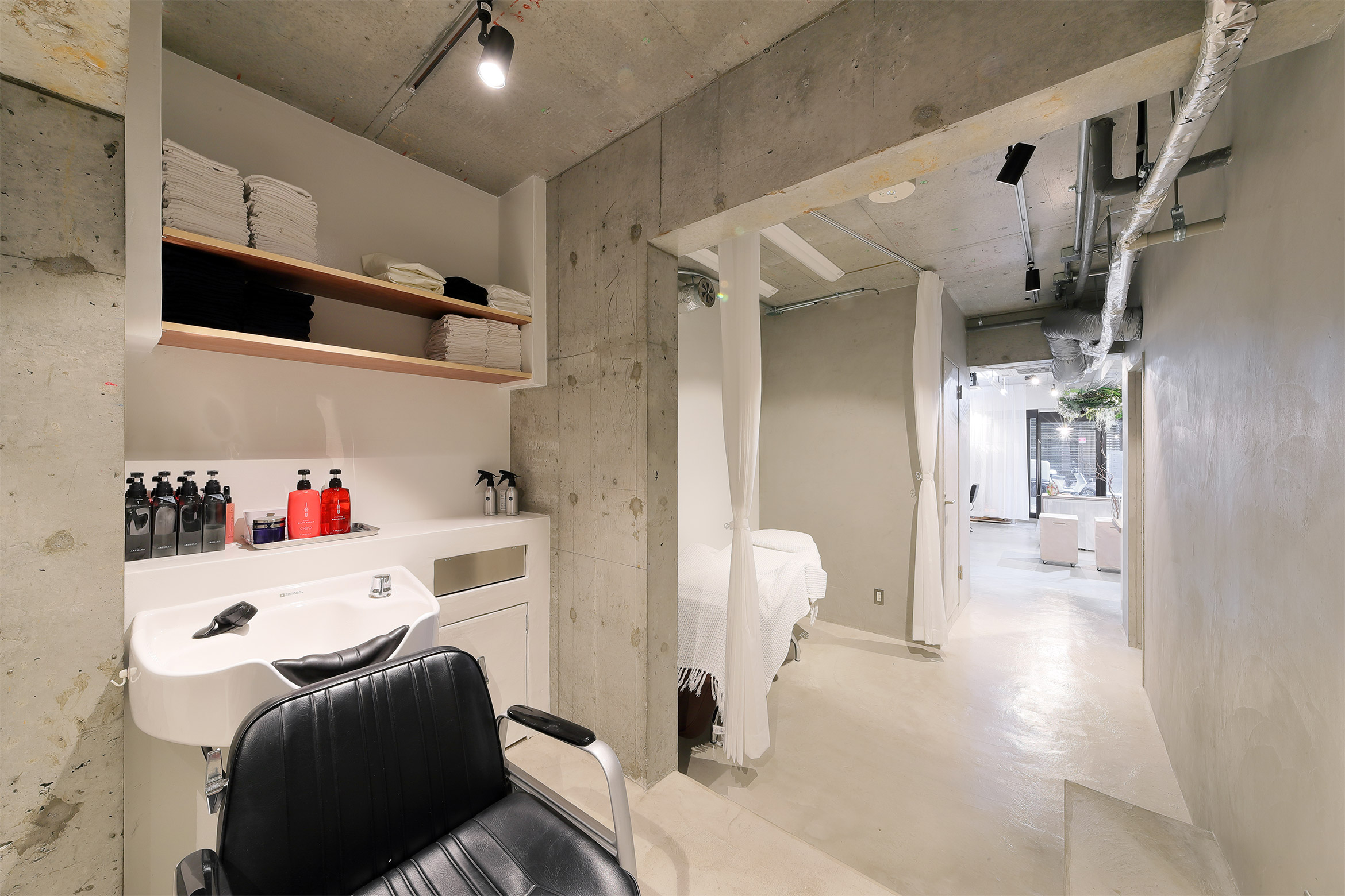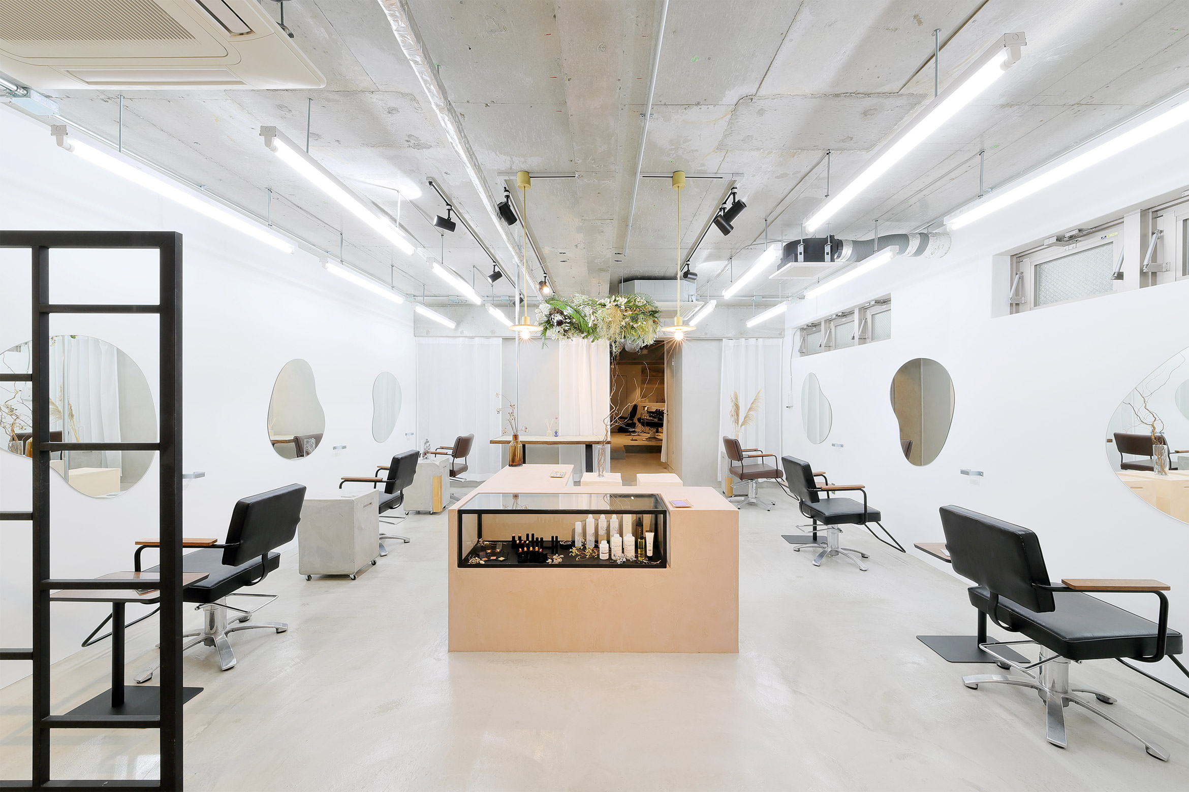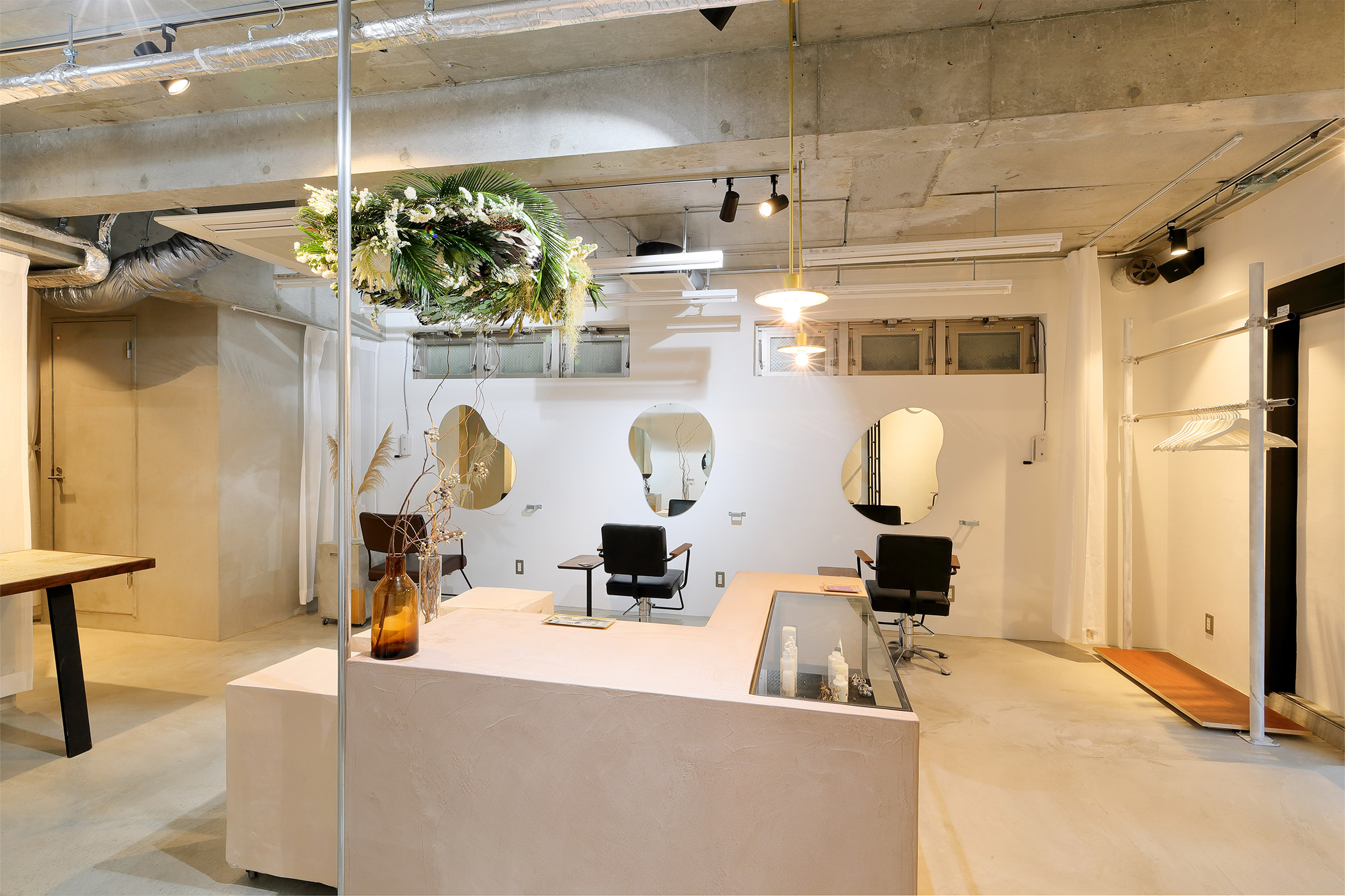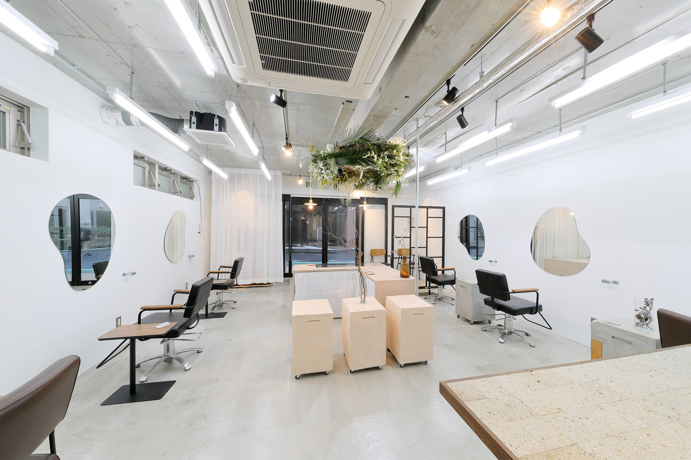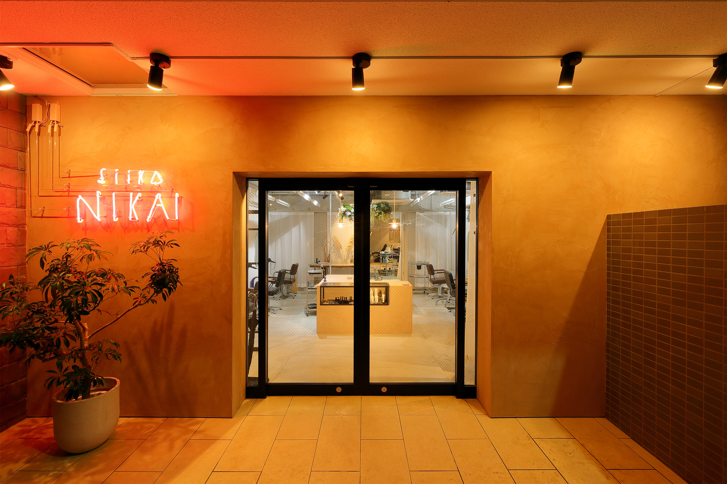 Hair Salon "nikai"のロゴディレクション、内装デザイン、サロン家具セレクトなどを行いました。